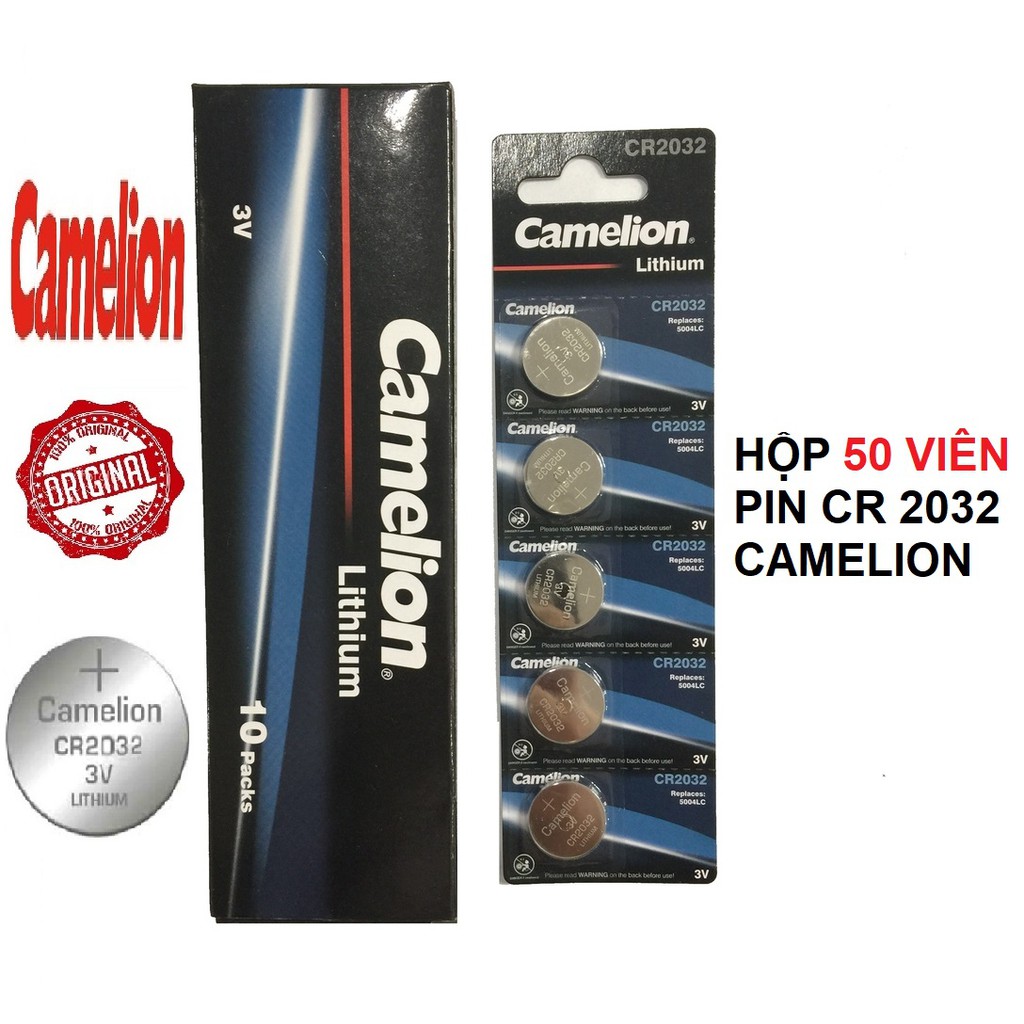 Giới thiệu Hộp 50 viên pin CR2032 3V CAMELION CR-2032 2032 3 Vol (Hàng hãng)