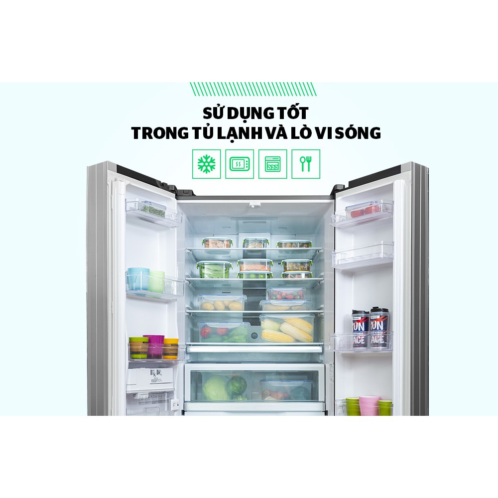 Gioăng silicon bọc quanh nắp hộp, ngăn không cho không khí tràn vào hoặc thoát ra, hạn chế quá trình oxy hóa xảy ra, thực phẩm tươi lâu hơn.