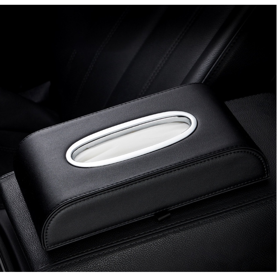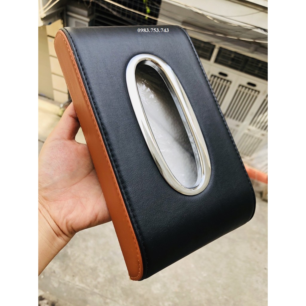 Hộp đựng giấy ăn trên ô tô, hộp đựng khăn giấy xe hơi bọc da viền kim loại sang trọng, chắc chắn