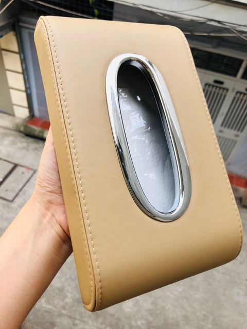Giới thiệu Hộp đựng giấy ăn trên ô tô, hộp đựng khăn giấy xe hơi bọc da viền kim loại sang trọng, chắc chắn