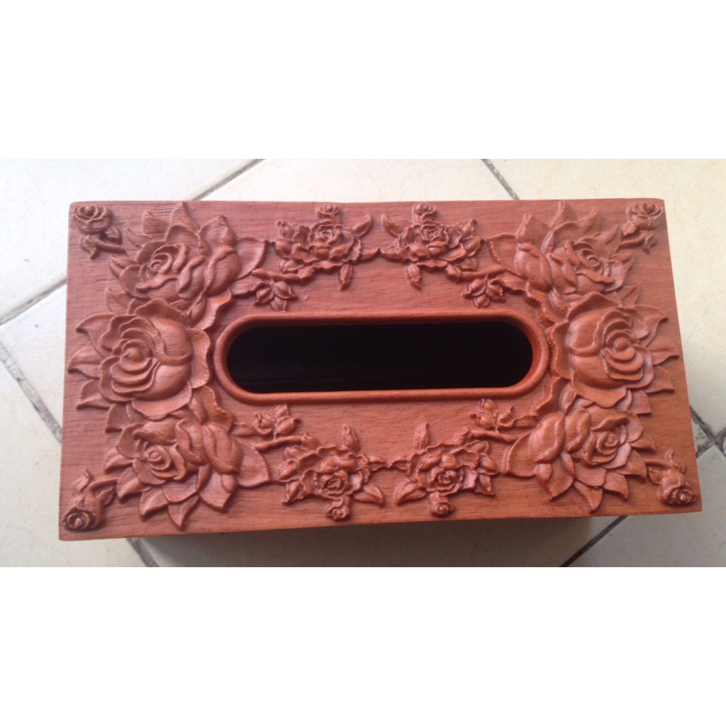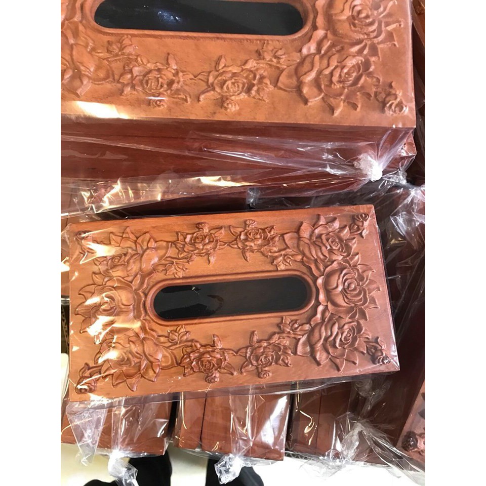 Hộp đựng giấy đục nổi hoa hồng gỗ hương tinh tế.Sản phẩm được làm từ gỗ tự nhiên không gây hại cho sức khỏe