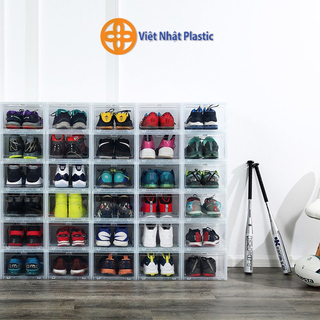 Hộp đựng giày nắp nhựa cứng trong suốt Việt Nhật Plastic gấp gọn và xếp chồng 3868