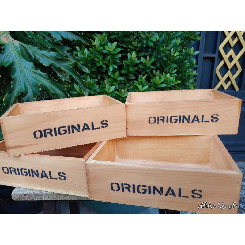 chậu gỗ originals trồng cây phối tiểu cảnh sen đá xương rồngkích thước .cao 6cm .ngang 13cm.dài 16cm