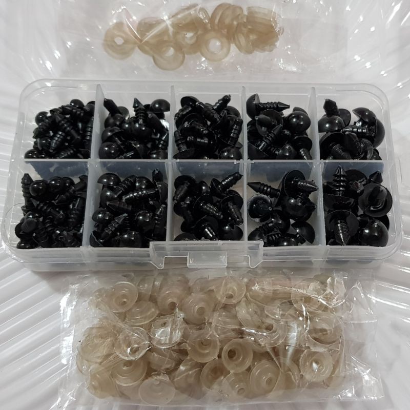 Hộp mắt thú bóng đẹp có chốt vặn an toàn size từ 6mm đến 14mm.Hộp 100 cái 45k