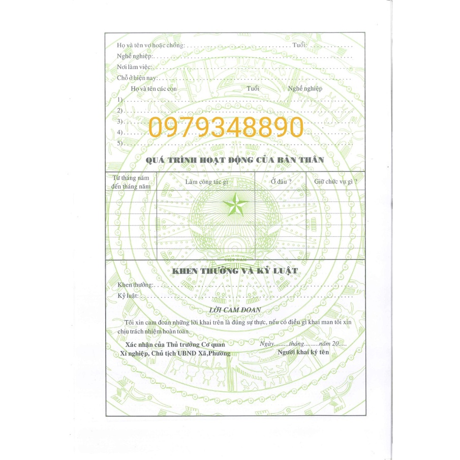 HỒ SƠ XIN VIỆC MẪU CHUẨN (5 BỘ)