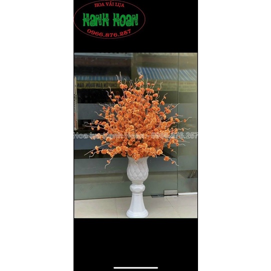 - 👉 Chất liệu: hoa làm bằng bằng lụa cao cấp, mềm mại, siêu bền, đẹp mãi với thời gian. Cành làm bằng nhựa bọc thép nên có thể uốn nắn theo sở thích.