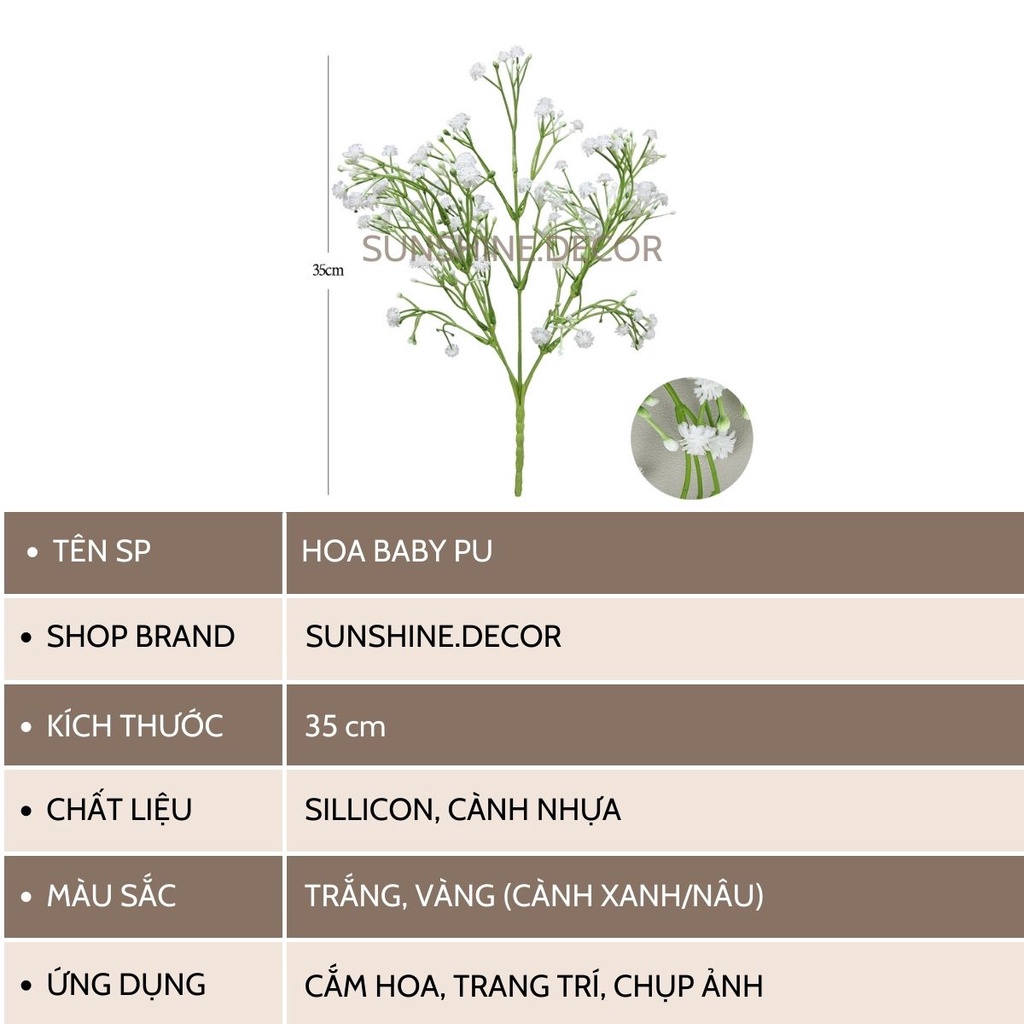 Giới thiệu Hoa baby giả Gypsophila xinh xắn bằng PU giống thật 1 cành 5 nhánh trang trí chụp ảnh