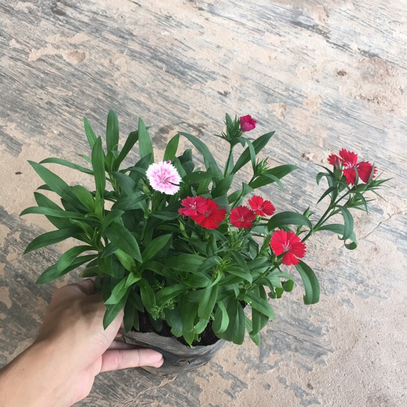 Nhà cửa & Đời sống > Làm vườn > Cây cảnh || Cây hoa cẩm chướng mix màu trồng trong bịch đen đã có hoa và nụ (Như Hình)Còn hàng