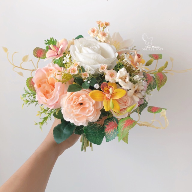 Nhà cửa & Đời sống > Trang trí nhà cửa > Hoa trang trí || Hoa Cầm Tay Cô Dâu - Phụ Kiện Cưới Xinh - Tone Màu Cam San Hô RND50Còn hàng