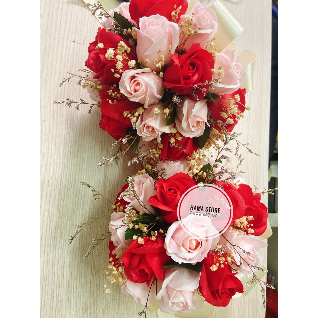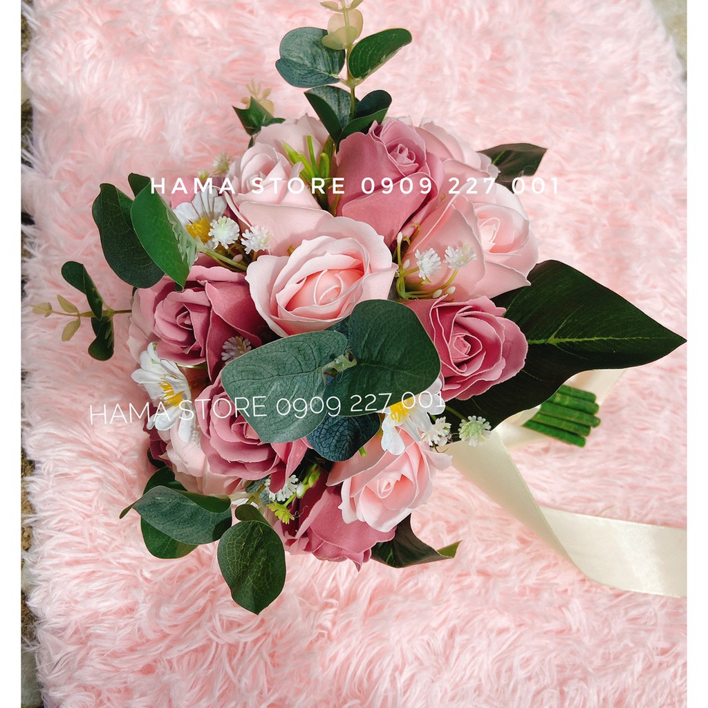 Nhà cửa & Đời sống > Trang trí nhà cửa > Hoa trang trí || Hoa cầm tay cô dâu sáp thơm phối cùng cúc hoạ mi với hoa hồng sáp thơm tone màu Hồng PastelCòn hàng