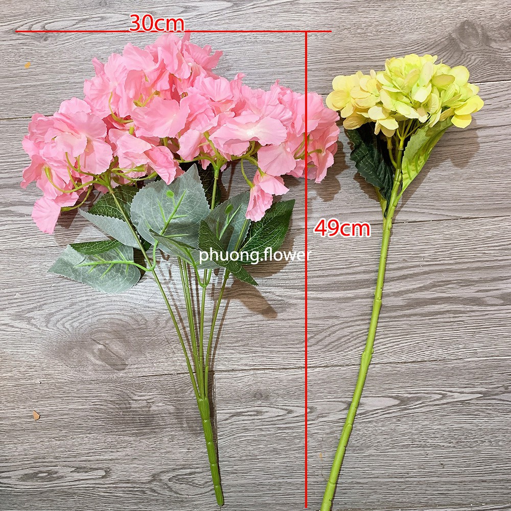 Hoa Cẩm Tú Cầu bằng Lụa 47cm 5 chùm hoa lớn Size lớn 30cm và vừa 15cm giống thật 99% dùng trang trí và cắm bình cực đẹp