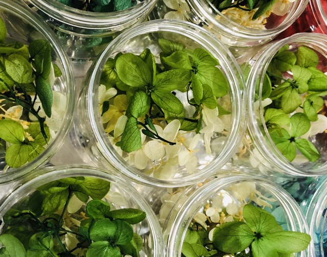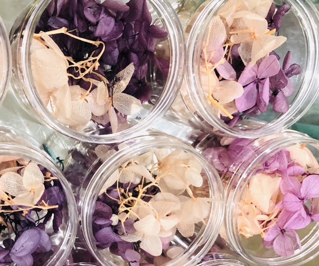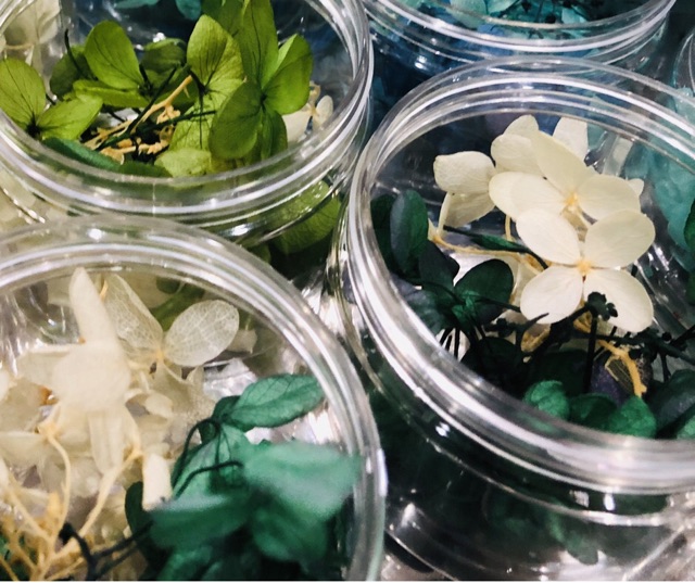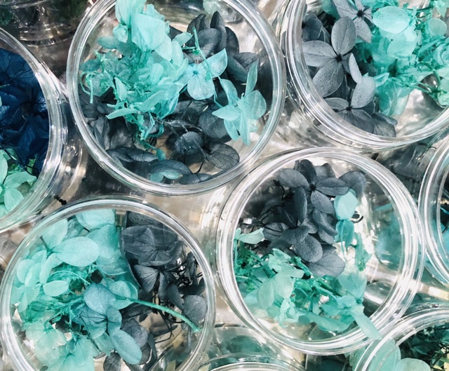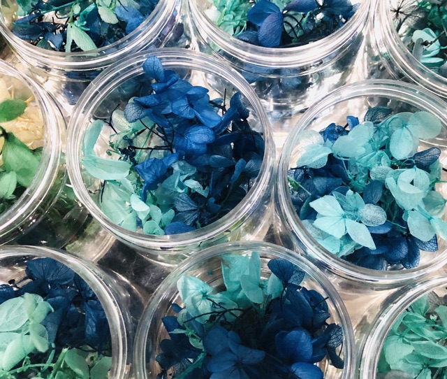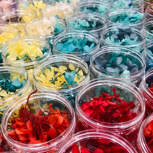 Hoa cẩm tú cầu khô nhuộm màu trang trí nữ trang sản phẩm đúc resinKích thước hũ 8cm x 6cm x8cm