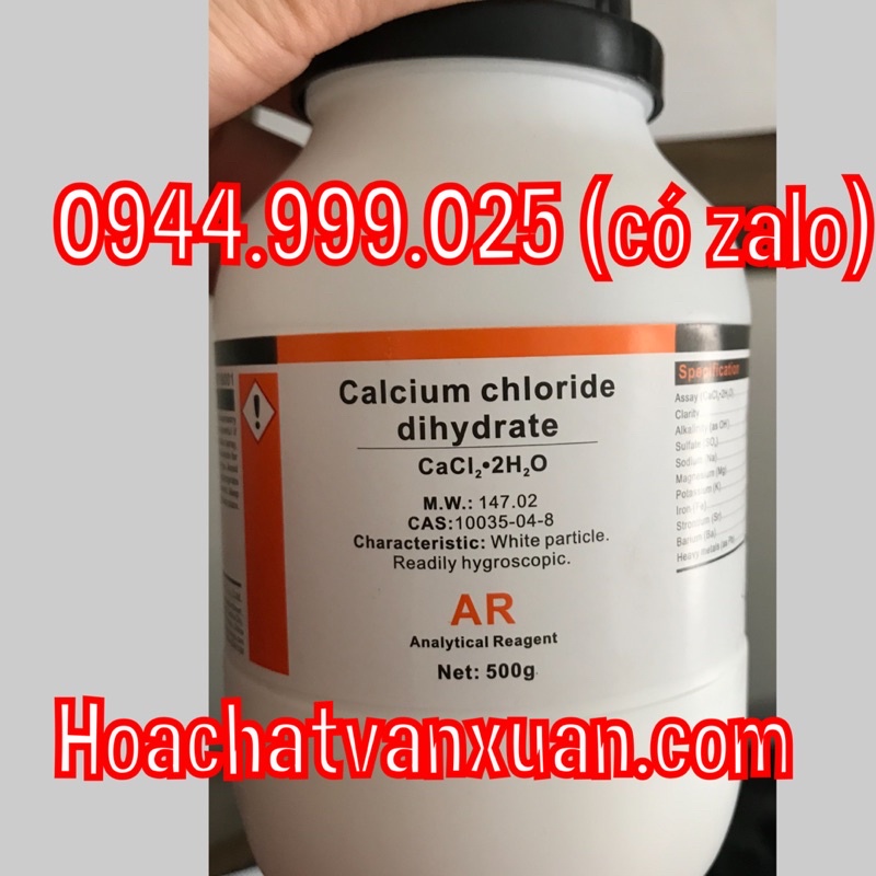 Hóa chất Calcium chloride dihydrate CAS 10035-04-8 CaCl2 .2H2O lọ 500gLiên hệ: 0944.999.025 (có zalo)