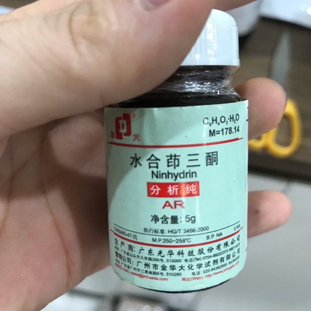 Nhà cửa & Đời sống > Làm vườn > Trang trí vườn || Hoá chất Ninhydrin CAS 485-47-2 C9H6O4 chai 5gCòn hàng