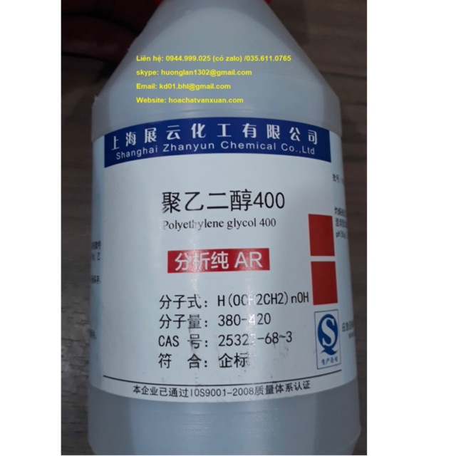 Hóa chất Polyethylene glycol PEG 400 CAS 25322-68-3 HO(CH2CH2O)nH lọ 500ml PEG400Liên hệ: 0944.999.025 (có zalo)