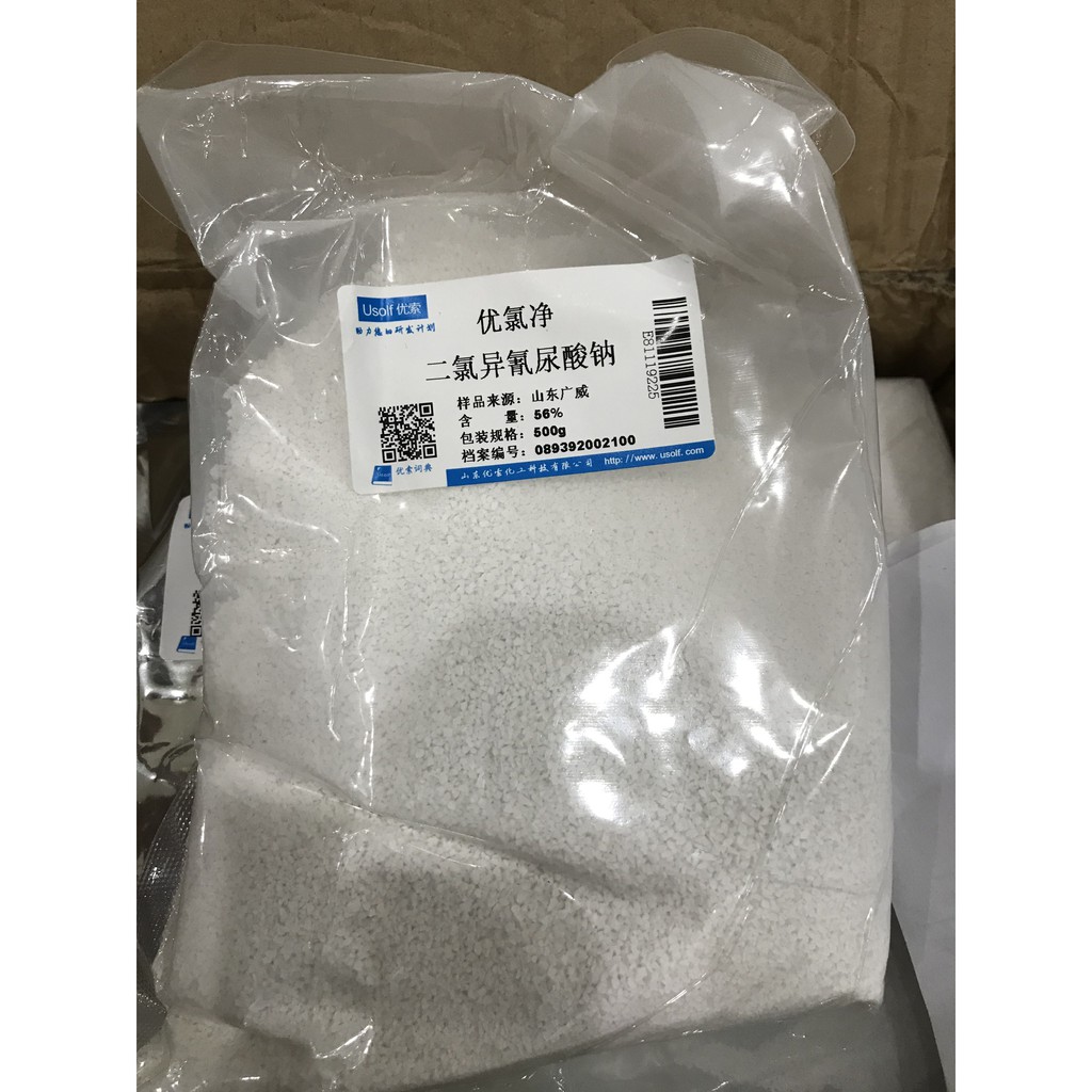 Nhà cửa & Đời sống > Chất khử mùi, làm thơm nhà > Khác || Hóa chất Sodium dichloroisocyanurate 56% túi 500g CAS 2893-78-9 Sodium troclosene Sodic troclosene NaDCC or SDICCòn hàng