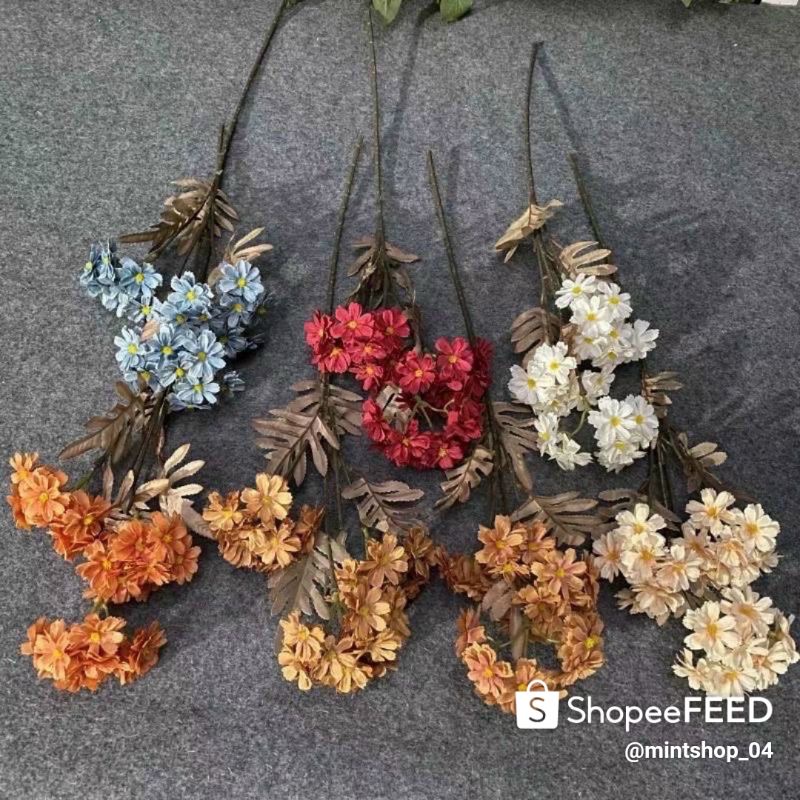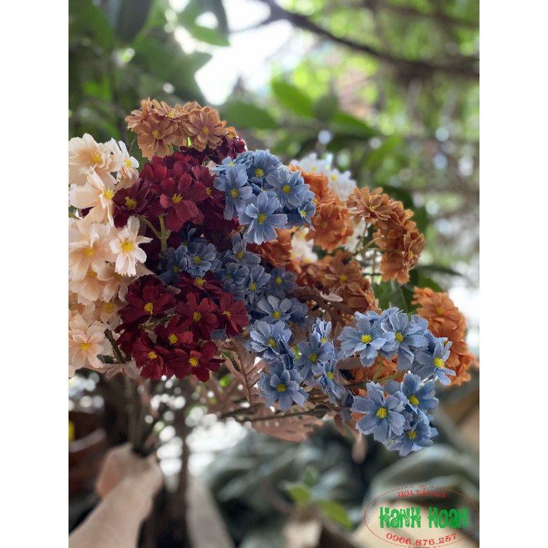 💗Hoa cúc cẩm tú - Hoa cúc cẩm tú giả giống thật 99%, 1 cành gồm nhiều chùm hoa với tone màu cực tây💗Bông hoa, vải lụa polyeste uốn cong mềm mại như hoa thật, nhụy hoa tinh tế. Cành hoa lá hoa đúc tạo hình tỉ mẩn