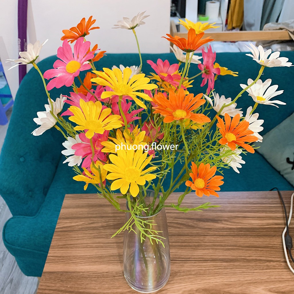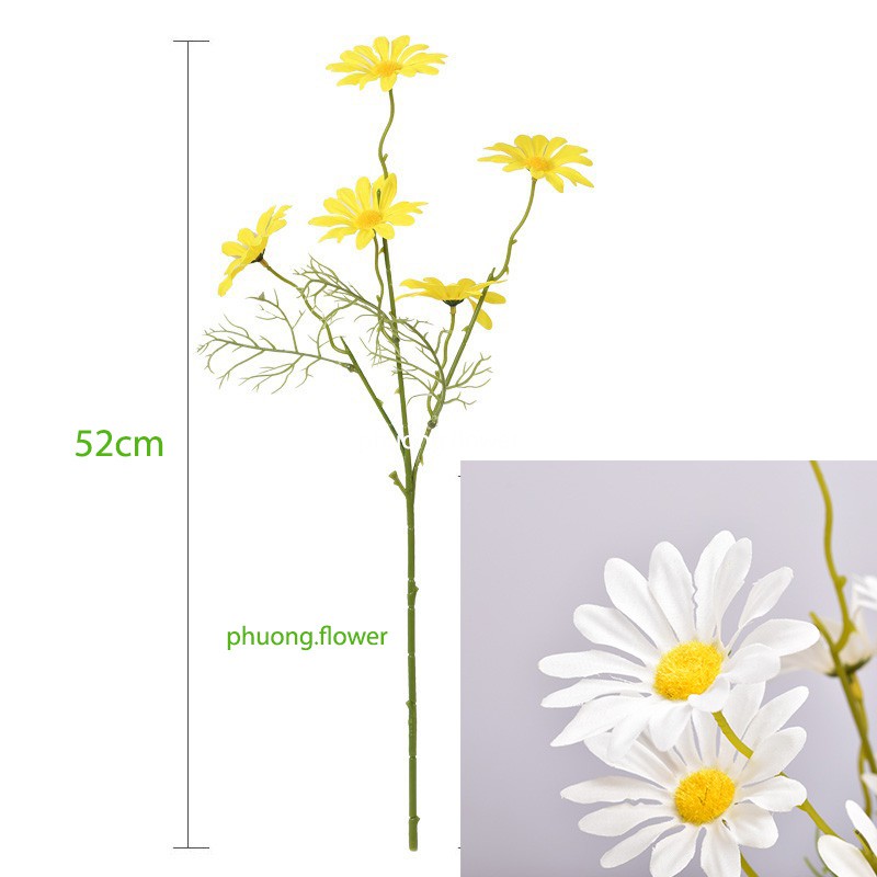 Hoa cúc họa mi giả cúc hà lan Loại 1 hoa bằng lụa 1 cành 5 bông loại dài 52cm giống thật 99% Ảnh Thật