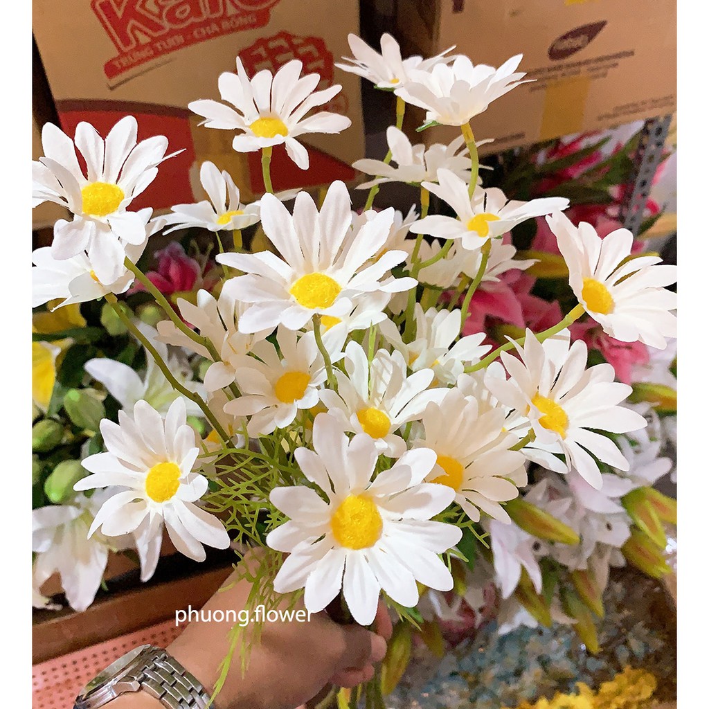 Giới thiệu Hoa cúc họa mi giả cúc hà lan Loại 1 hoa bằng lụa 1 cành 5 bông loại dài 52cm giống thật 99% Ảnh Thật