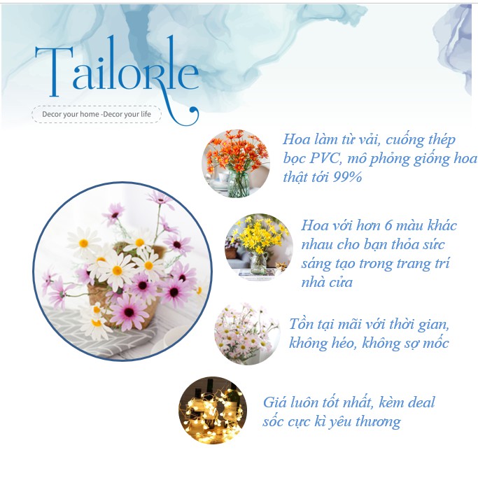 Giới thiệu Hoa cúc họa mi mô phỏng giống thật trang trí nhà cửa phong các Bắc Âu