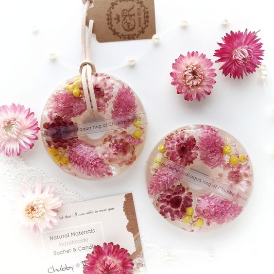 5. Sử dụng: những bông hoa khô được dát lên trên những lát sáp thơm, rất nhỏ và dễ thương ~~~