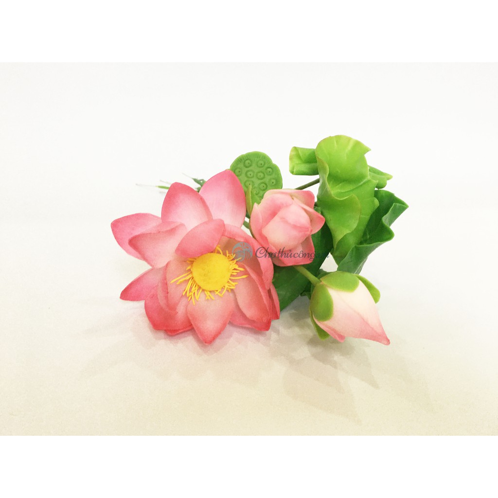 Bụi Hoa Sen đất sét trang trí decor size trung 20-25cmBụi hoa gồm nhụy, đài, búp, hoa nở và lá như hình.