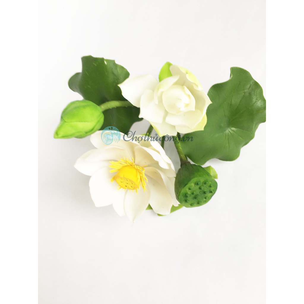 Nhà cửa & Đời sống > Trang trí nhà cửa > Hoa trang trí || Hoa đất sét Nhật Thái Handmade - Bụi Hoa Sen hồng / trắng trang trí decor size trung 20-25cmCòn hàng