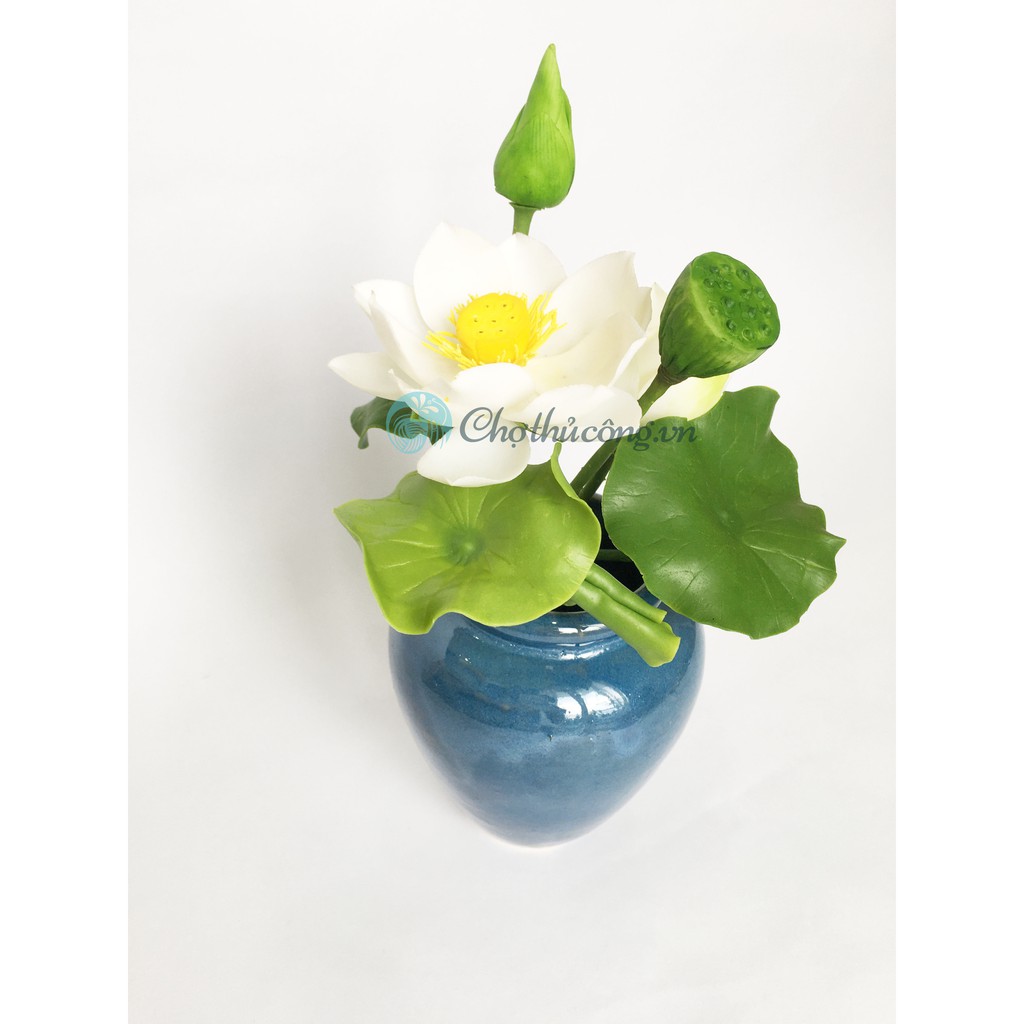 Hoa đất sét Nhật Thái Handmade - Bụi Hoa Sen hồng / trắng trang trí decor size trung 20-25cm