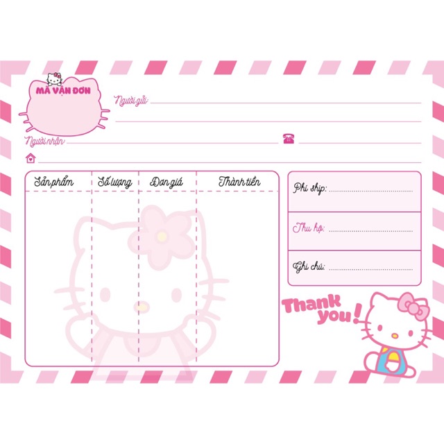 📝 Hoá đơn kiêm phiếu giao hàng hình bì Hello Kitty siêu đẹp✔ Số lượng: 100 tờ/1 sấp