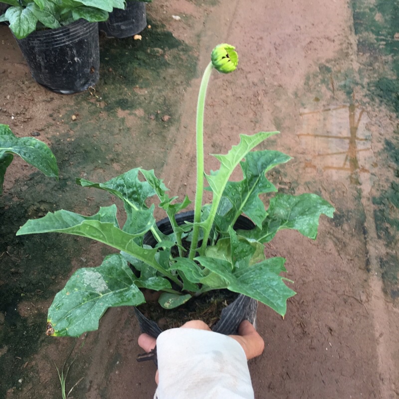 Cây hoa đồng tiền cao trồng bịch đen đã có nụ và đang ra hoa
