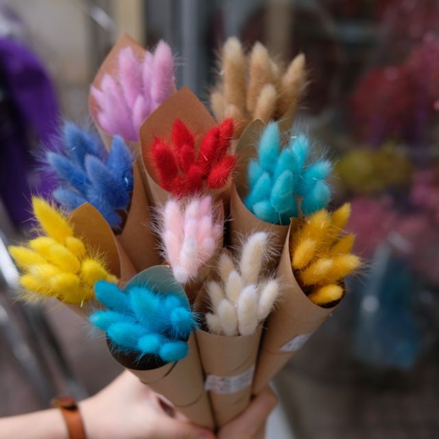cỏ đuôi thỏ khô dùng cắm lọ cực dễ thương Những bông hoa đuôi thỏ xinh xắn và cực kỳ đáng yêu có tên tiếng Anh là Bunny Tails. Sở dĩ nó có cái tên gọi là “hoa đuôi thỏ” bởi vì loài hoa này có màu sắc và hình thù rất giống những chiếc đuôi thỏ.cành cao từ 30-40cm