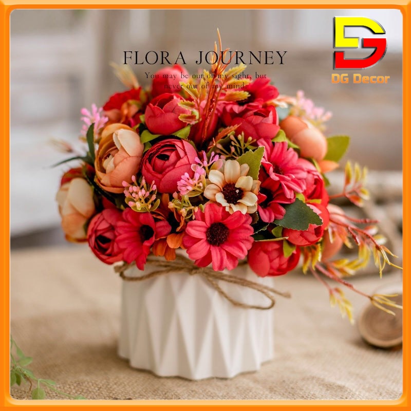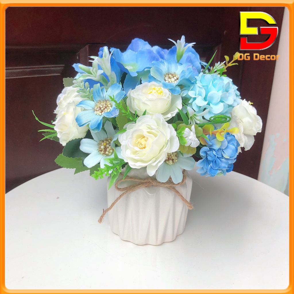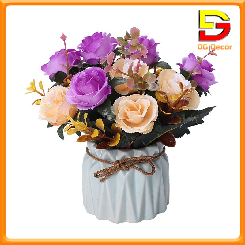 Giới thiệu Hoa Giả Bình Hoa Mini Cắm Sẵn Nhiều Mẫu Decor Bàn Trà Kệ Tủ Trang Trí Quán Cafe Cao 15-20cm DC-21