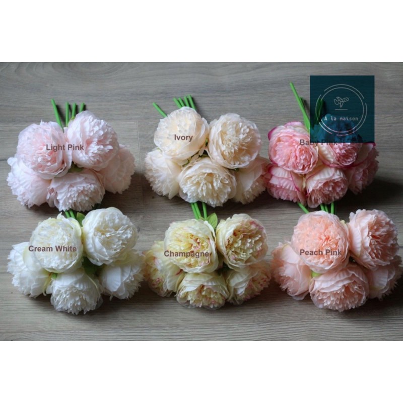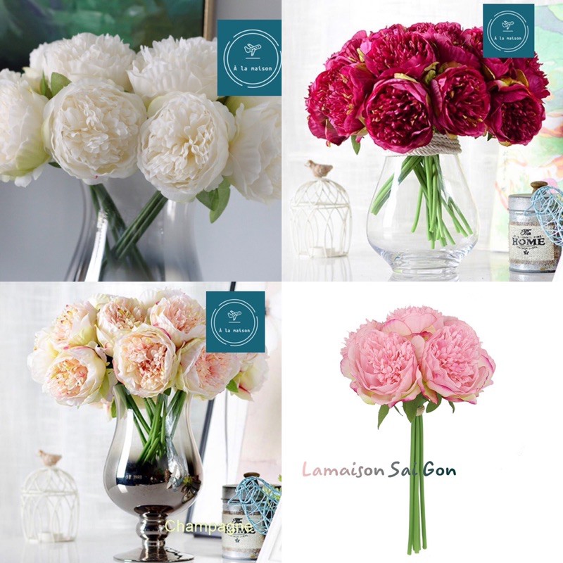 Nhà cửa & Đời sống > Trang trí nhà cửa > Hoa trang trí || Hoa giả - Bó 5 cành hoa mẫu đơn lụa cao cấp 33cm, Hoa cô dâu, hoa decor trang tríCòn hàng