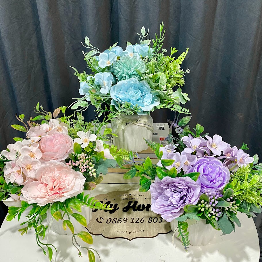 Nhà cửa & Đời sống > Trang trí nhà cửa > Hoa trang trí || Hoa giả - Bó hoa mẫu đơn hồng trà mix với tú cầu cực sang trọng và lãng mạn, trang trí decor đám cưới, để bànCòn hàng