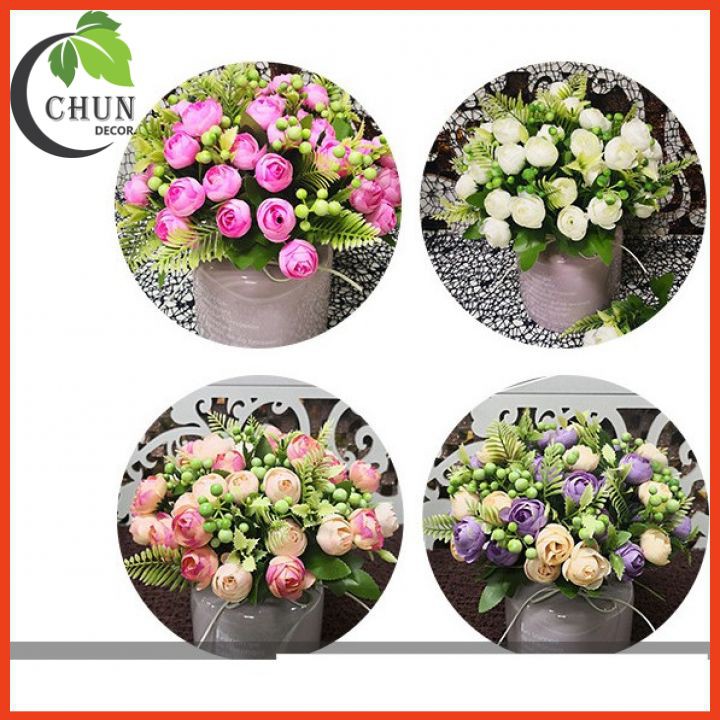 Nhà cửa & Đời sống > Trang trí nhà cửa > Hoa trang trí || Hoa giả, bó hồng trà 10 bông điểm quả mọng trang trí nhà cửa, cửa hàng, văn phòng hiện đạiCòn hàng
