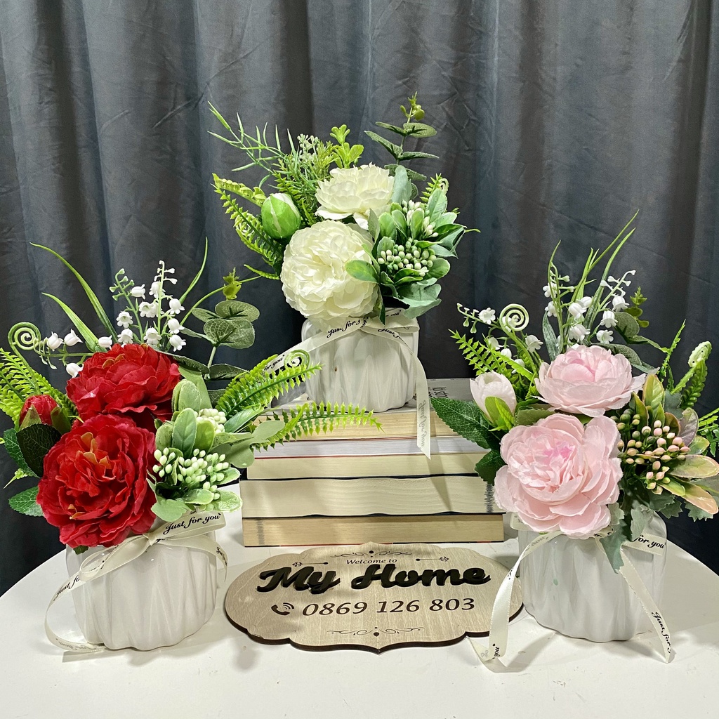 Nhà cửa & Đời sống > Trang trí nhà cửa > Hoa trang trí || Hoa giả cắm sẵn - Bình mẫu đơn sang trọng 20cm*15cm trang trí tiệc cưới, kệ tủ, để bàn, phụ kiện chụp ảnhCòn hàng