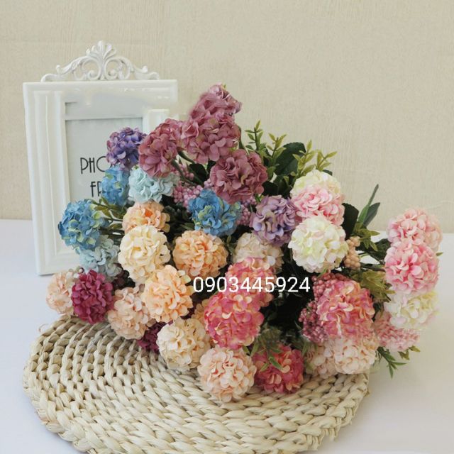 Giới thiệu Hoa Giả- Cẩm Tú Cầu 7 Bông Mix Trộn Màu Cao 36cm