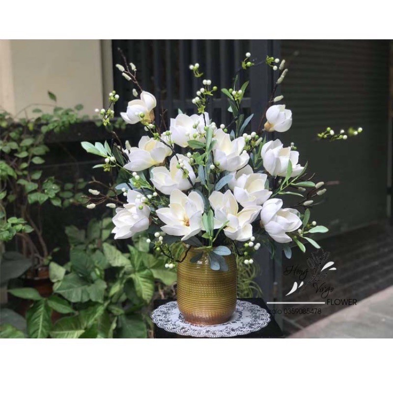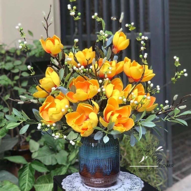 - 👉 Chất liệu: Lá làm bằng lụa, nụ làm bằng cao su non xốp phủ bóng nên rất giống thật. Cành làm bằng nhựa PVC bọc thép có thể uốn nắn theo sở thích.