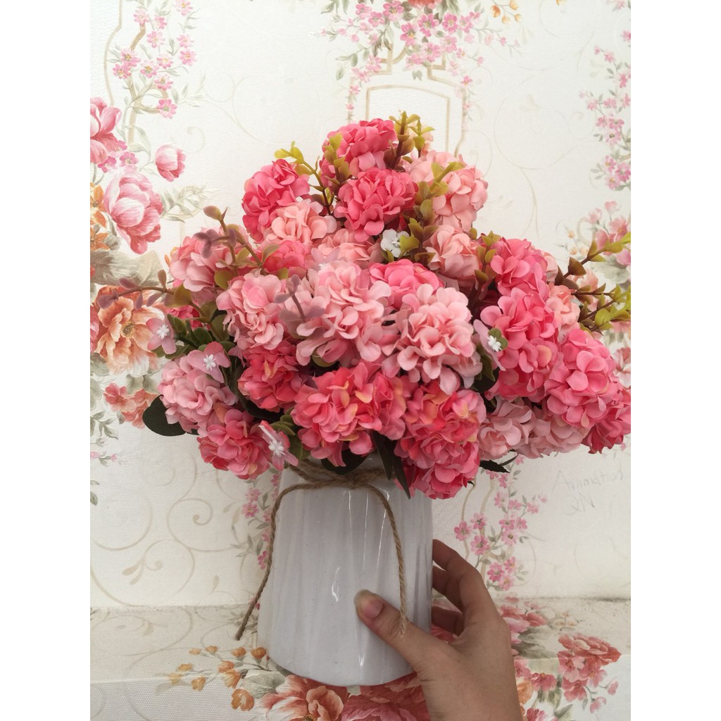 Nhà cửa & Đời sống > Trang trí nhà cửa > Hoa trang trí || Hoa giả - Cành hoa cẩm tú cầu lụa 10 bông phong cách châu Âu trang trí nhà cửaCòn hàng