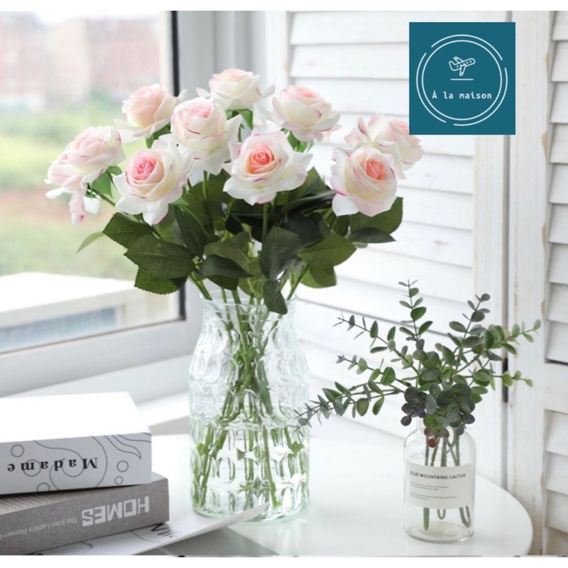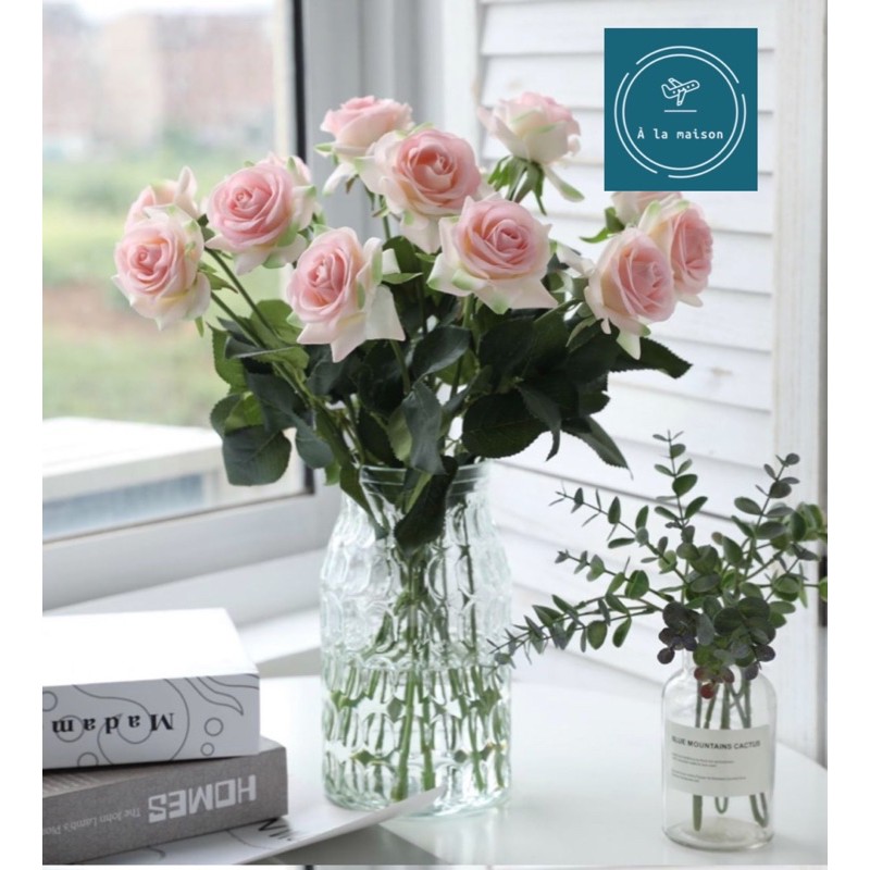 Giới thiệu Hoa giả - Cành hồng 4D cao cấp 43cm mướt như hoa thật trang trí không gian tươi mới