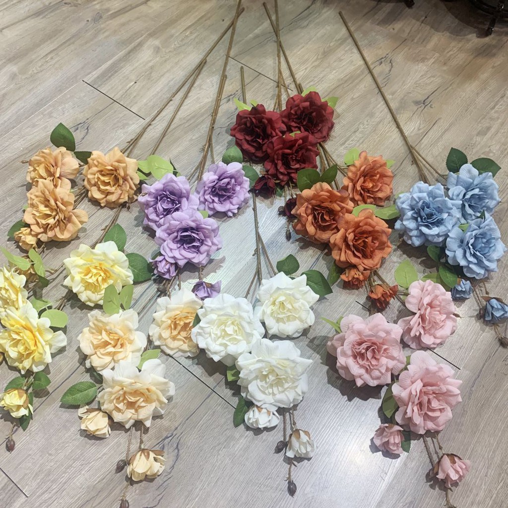 Giới thiệu Hoa Giả Cành Hồng Misaki 3 Bông 2 Nụ 90 Cm