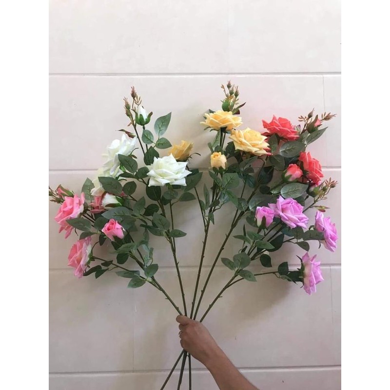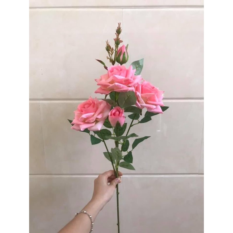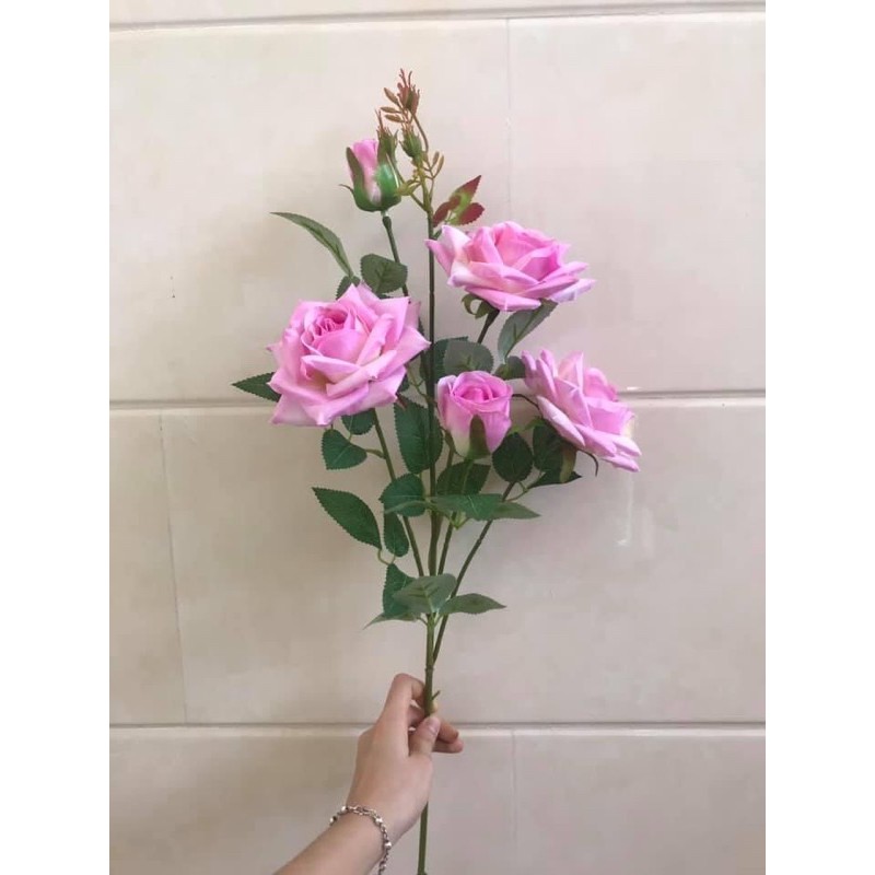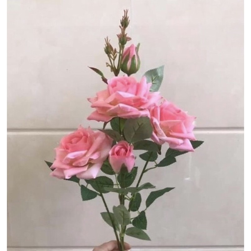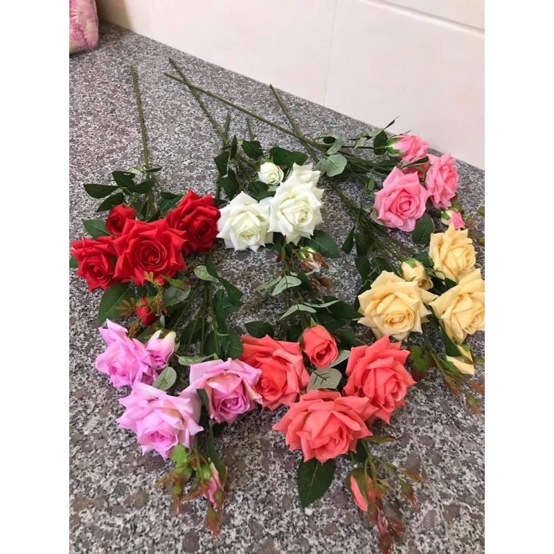 Nhà cửa & Đời sống > Trang trí nhà cửa > Hoa trang trí || Hoa giả - Cành Hồng pha Lê bông lớn (3 bông 2 nụ) trang trí siêu đẹpCòn hàng