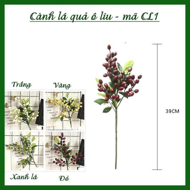 [ Hoa Giả ] Cành lá điểm quả ô liu giống thật - cành cao 39cm - hoa giả hoa lụa- MÃ CL1