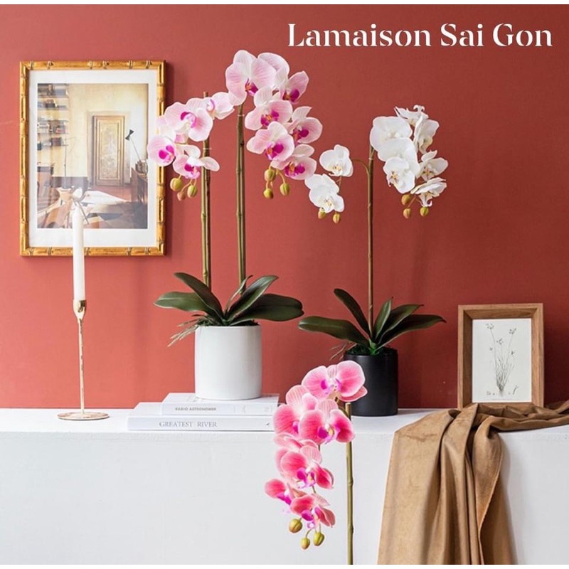 Hoa giả - Cành lan hồ điệp 5 bông nhân tạo chất liệu PU cao cấp, hoa lụa trang trí cao cấp