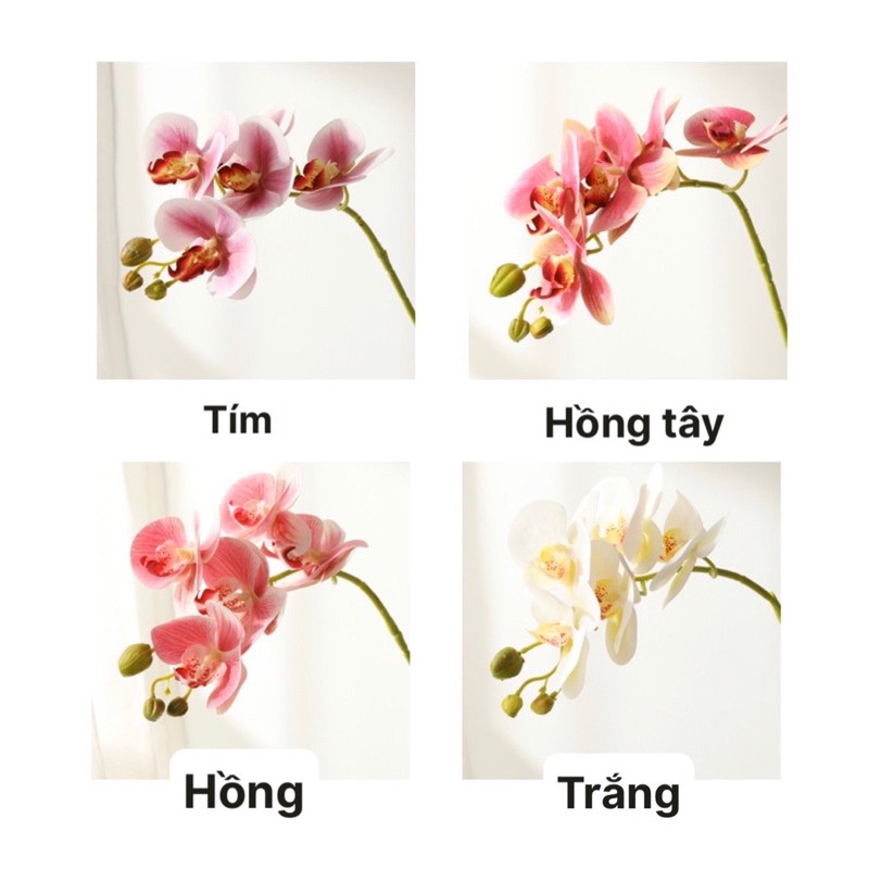 Giới thiệu Hoa giả - Cành lan hồ điệp 5 bông nhân tạo chất liệu PU cao cấp, hoa lụa trang trí cao cấp