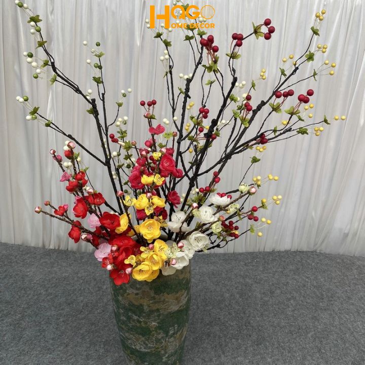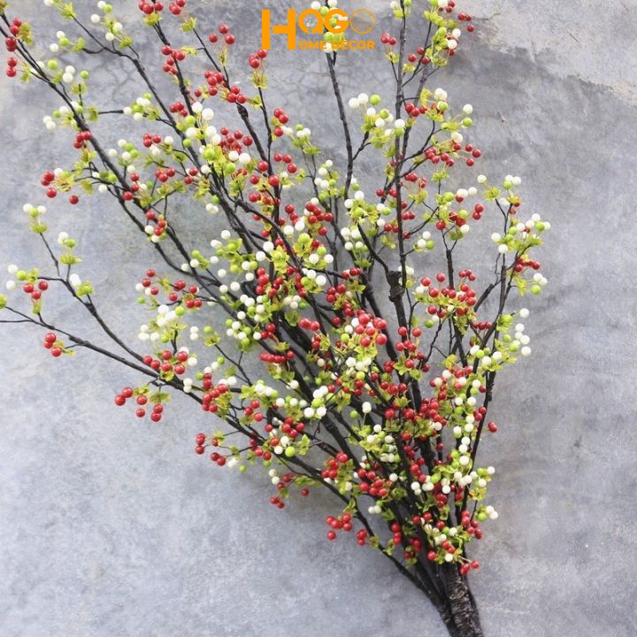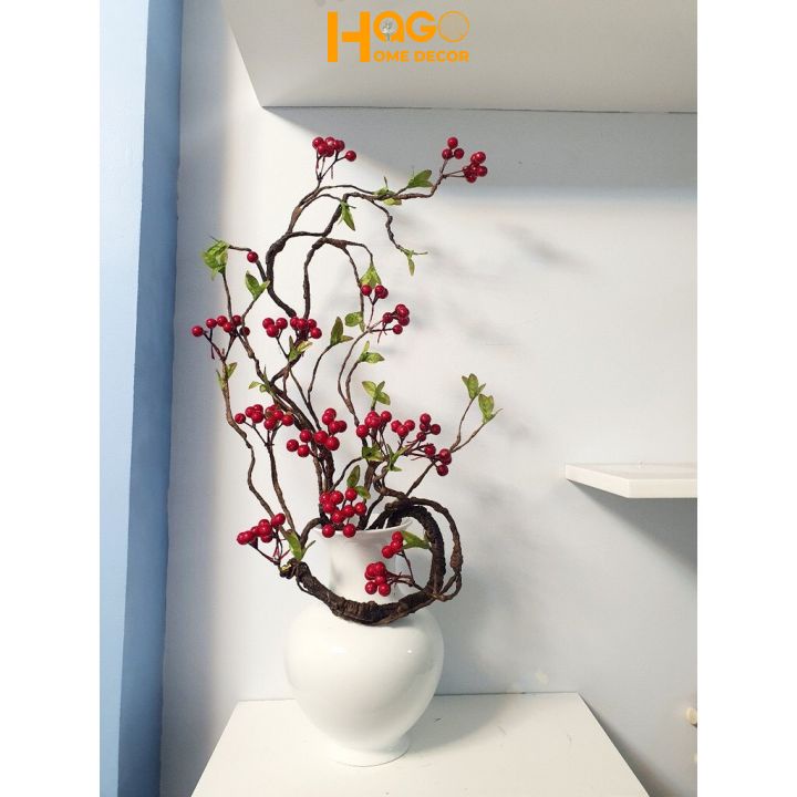 Nhà cửa & Đời sống > Trang trí nhà cửa > Hoa trang trí || Hoa giả, cành quả cherry cổ dài 95cm điểm bình hoa mộc lan, đào đông, lựu đỏ sang trọngCòn hàng