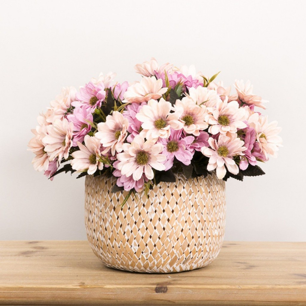 Để cắm được bình hoặc giỏ như mẫu b cần sử dụng 4-5 cành hoa cúc giả