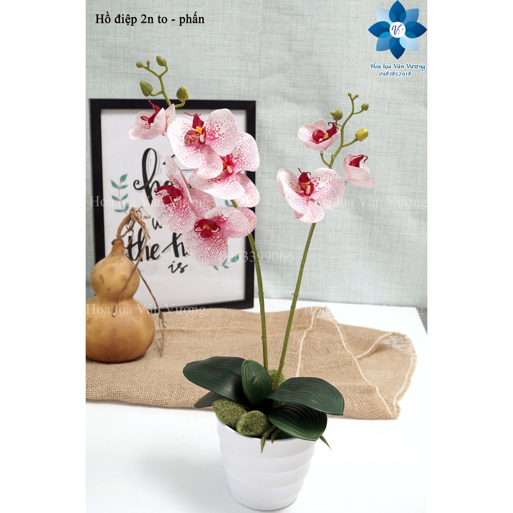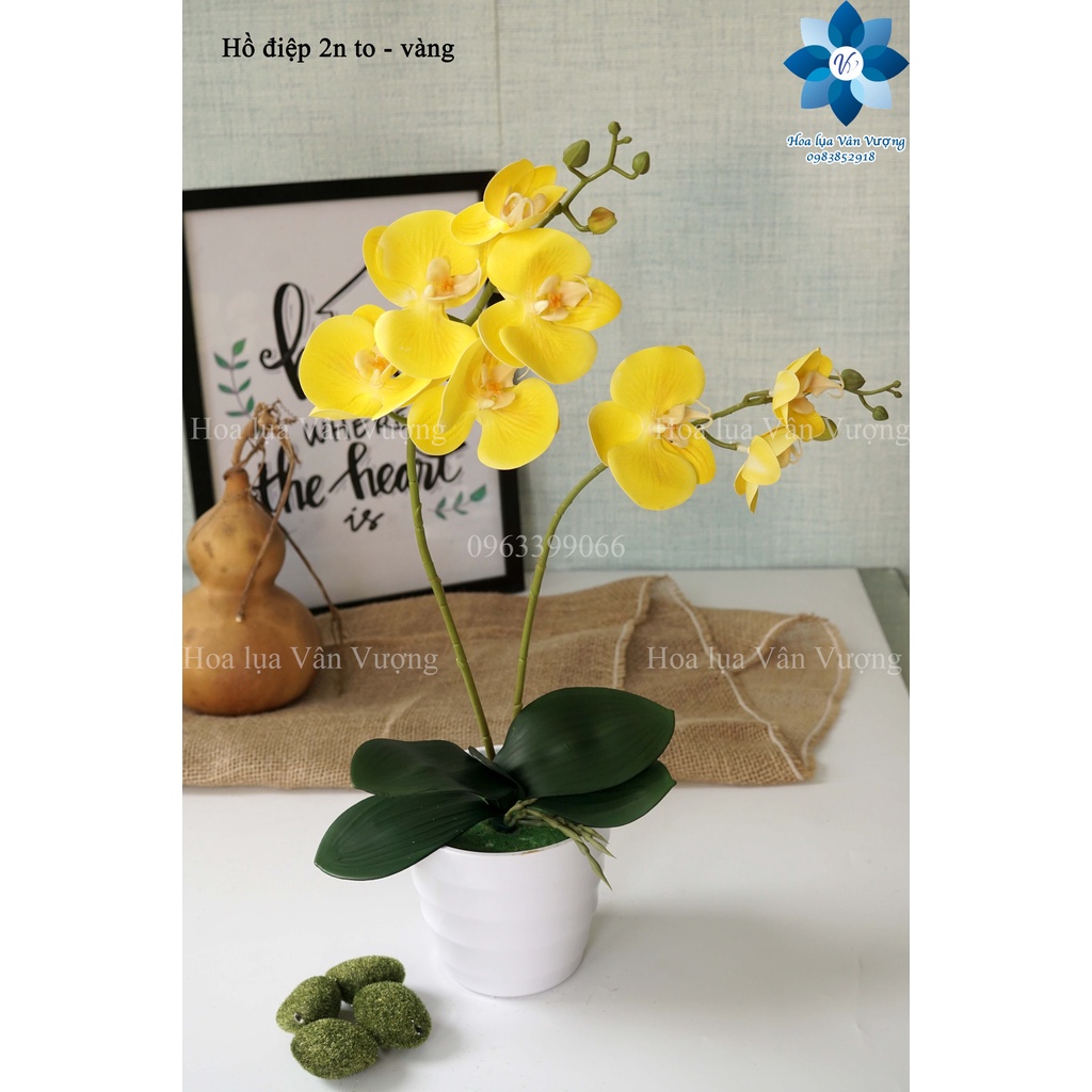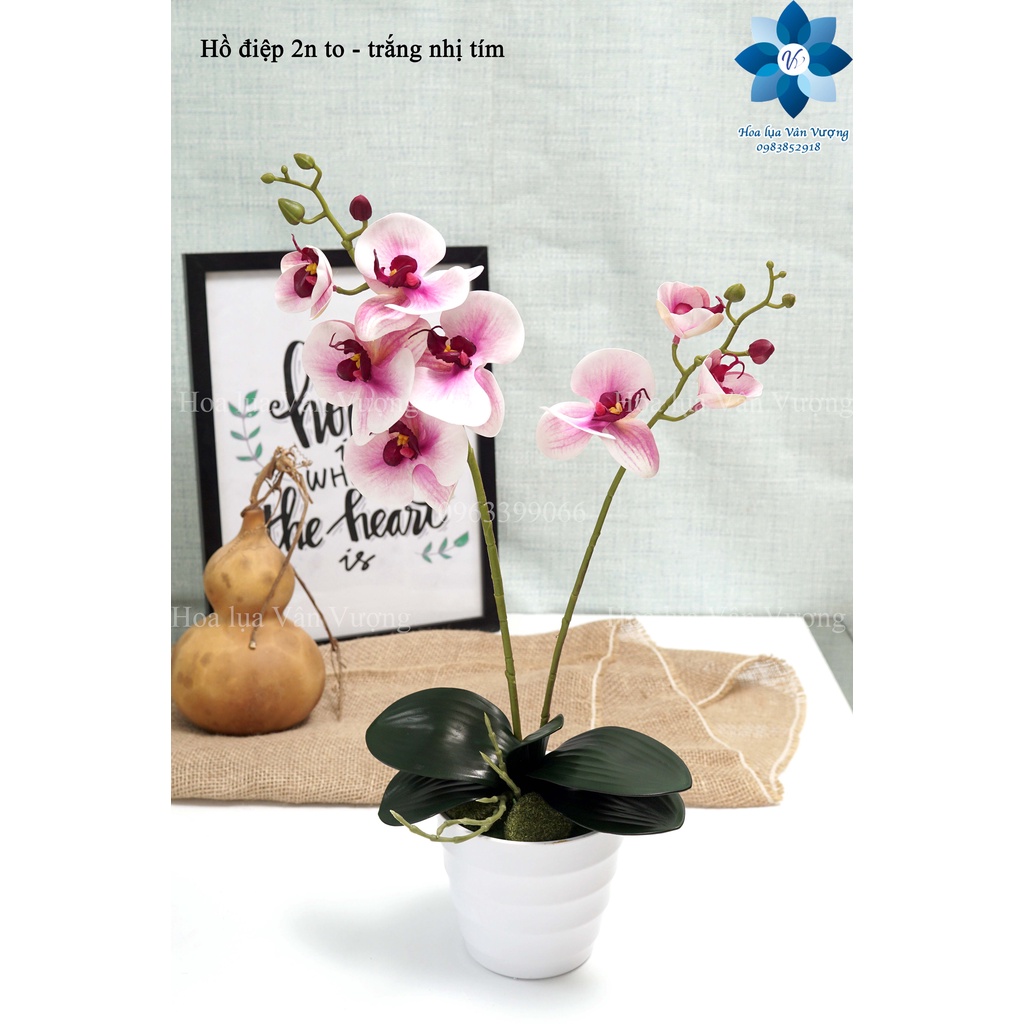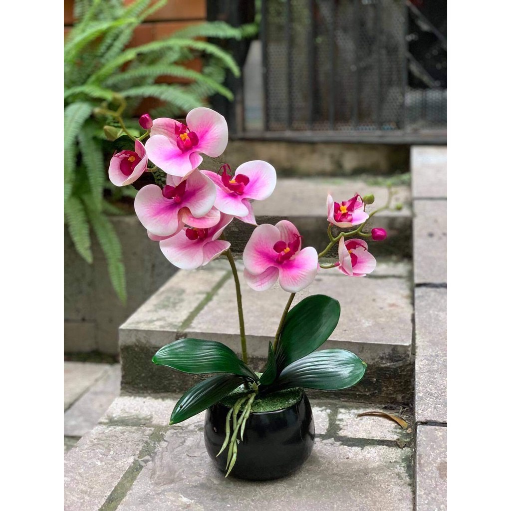 Giới thiệu Hoa Giả Cây Lan Hồ Điệp 2 Nhánh Hoa Có Lá Và Rễ Cây