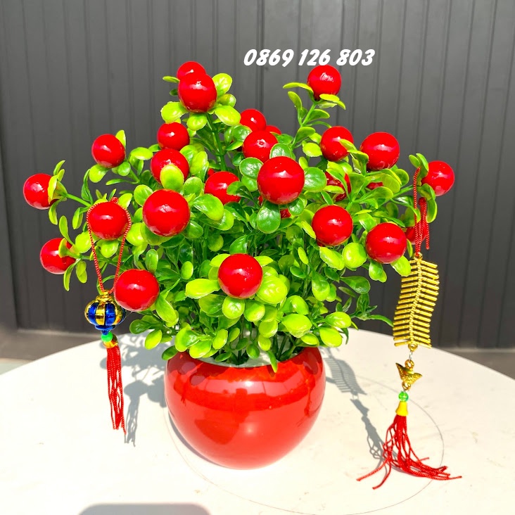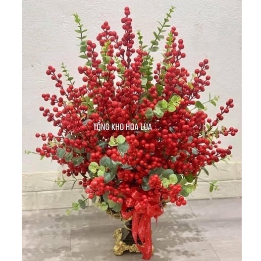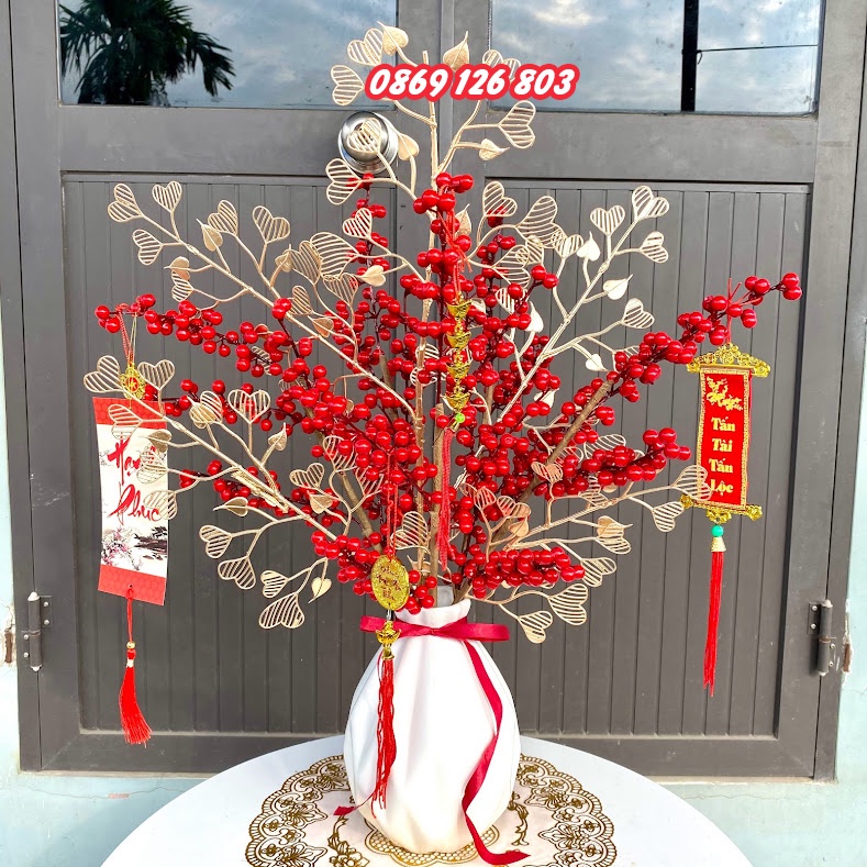 Hoa giả - Cây quả đỏ - Đào đông, bạch quả, tim vàng, quạt vàng trang trí tết mang tài lộc phúc thọ