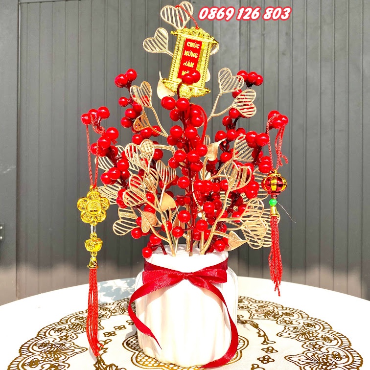 Giới thiệu Hoa giả - Cây quả đỏ - Đào đông, bạch quả, tim vàng, quạt vàng trang trí tết mang tài lộc phúc thọ
